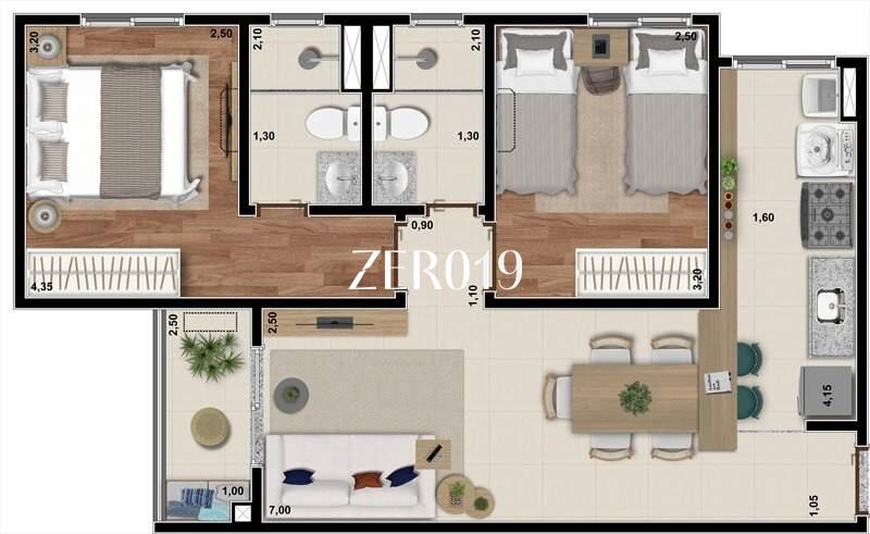 Apartamentos de 49m² a 55m² de 2 dormitórios com varanda + suíte + 1 ou 2 vagas por unidade.